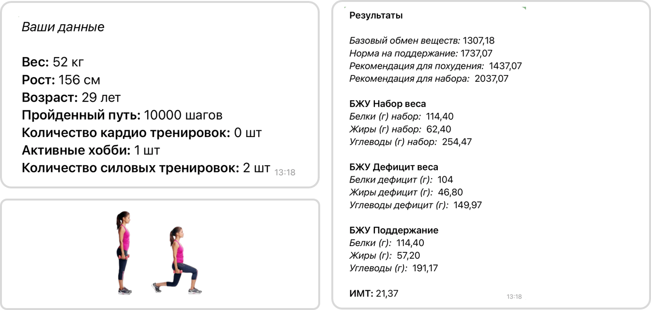 Был негативный опыт работы с тренером в прошлом. После работы с другим тренером девушка набрала 16кг, т.к. не выдержала слишком жёстких тренировок и ограничений в продуктах. Был длительный срыв и зажор. Во время работы со мной мы были более внимательны к отдыху и восстановлению, балансировали нагрузку и отдых, скинули вес обратно. Теперь девушка не откатывается в весе назад. Тренировки в зале.